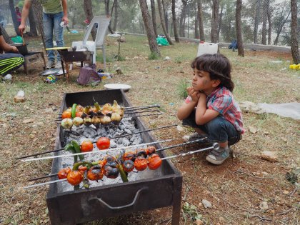 Taking matters into his own hands, Faris locates a near-full jerry can of water and drags it across the grassy picnic ground to douse the coals on the barbecue. Faris is only four years old and the jerry can is only slightly shorter than he is. But like most of Jordan’s refugee children he is fast learning to be independent.