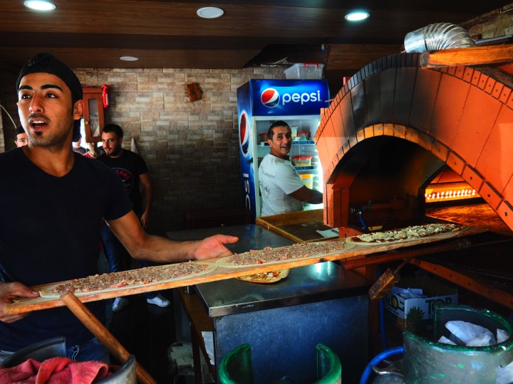 Abu Samir’s manaqeesh bakery is bustling at 11am; his young assistant Ibrahim bakes, oblivious to the summer heat and open gas oven while his customers – mostly young labourers – debate football and the futures of the regimes of Iran and Syria.