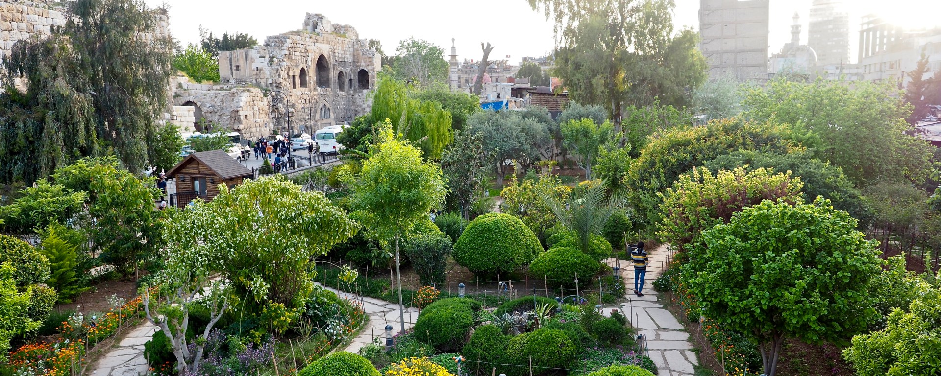 The sound of the fast-flowing Barada river accentuated the gardens’ dreamy setting beneath the old city walls. The location made it possible to momentarily forget the ongoing war outside the Syrian capital.
