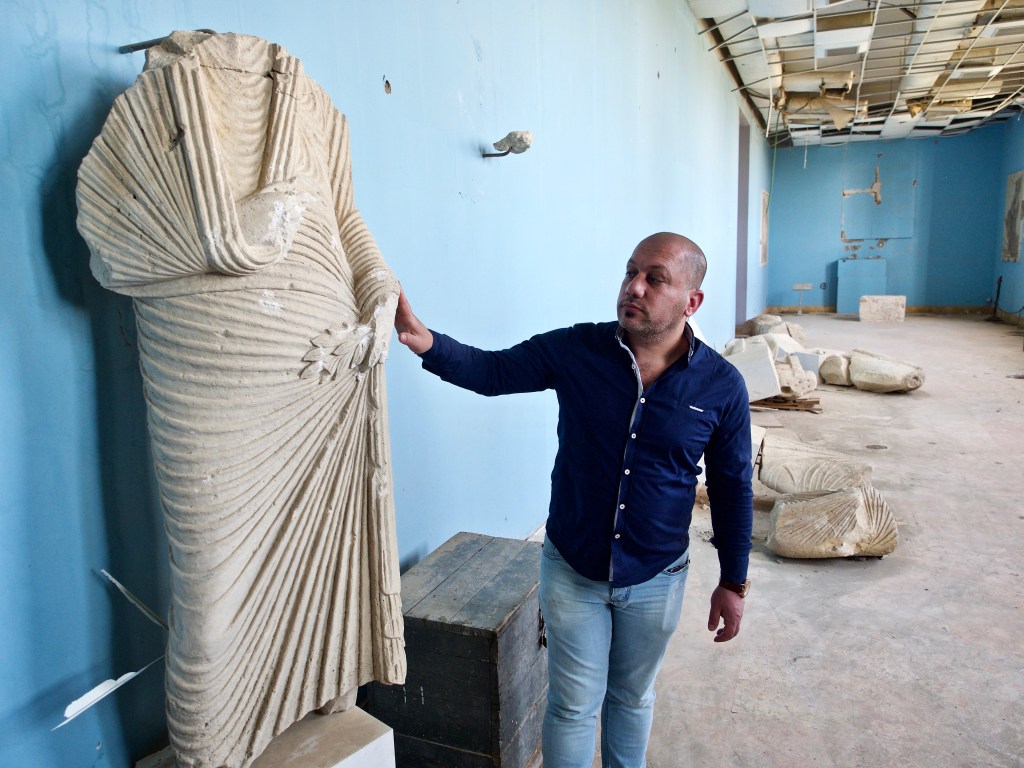 With holes the size of cars in the roof, doors blown off hinges, and every single statue and sculpture shattered or defaced in some way, we were confronted by the awful silence of thousands of years of heritage hanging on the edge of loss.
