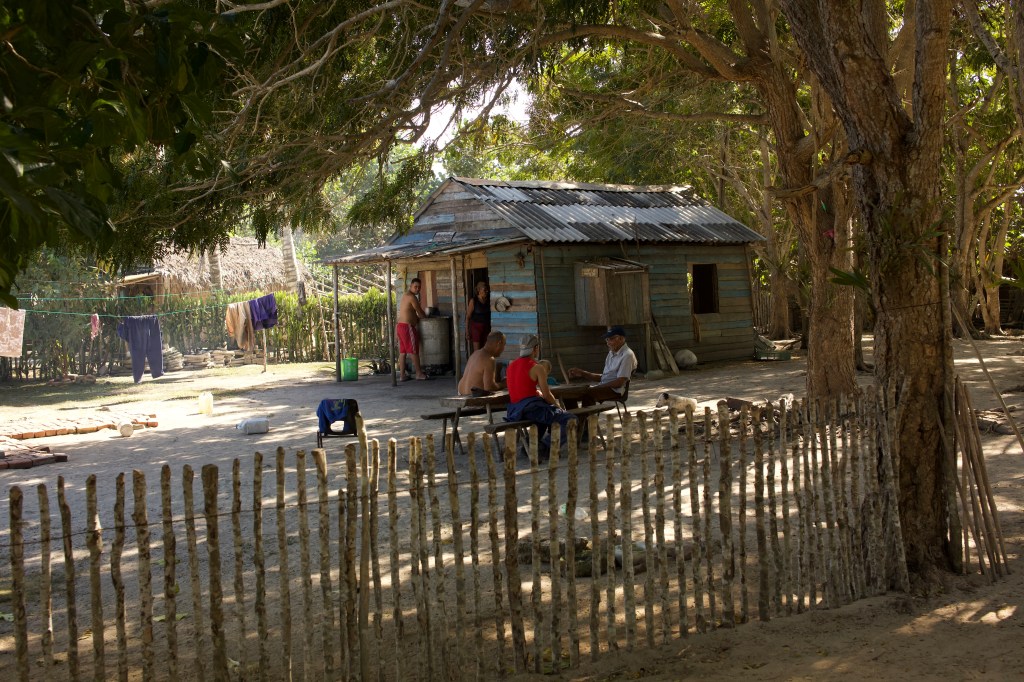 After an hour’s drive down a dirt road to the east of Playa Giron, we arrived at the coastal village of Guasasa. The town could be straight out of Ernest Hemingway’s The Old Man and The Sea. Children ran to greet us as the bus pulled into the town square and men and women heavily weathered by the sun casually peered out from their simple concrete homes shaded by the coastal forest. The sandy town square is flanked by a medical centre – the town’s only 2-level building – and a 15 metre-square concrete slab shaded by a wood and tin roof.