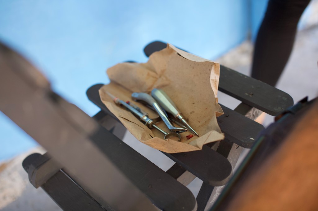 Using mobile phone flashlights, paper-wrapped pliers, and reusable steel syringes, three nurses performed minor surgeries and tooth extractions on several young men as their girlfriends and friends watched on, jesting at their winces and complaints.
